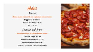 Fritz’s Café, located on the entry level, is open during select hours, which vary seasonally. We serve amazing pizzas, sandwiches, loaded nachos and fries, desserts, and more. There are also times when we serve drinks and snacks only.